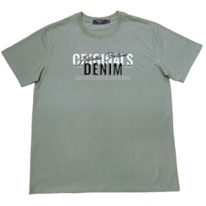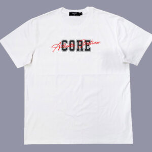 Áo thun cổ tròn , tay ngắn in chữ Core demin trắng phối xám -đỏ
