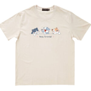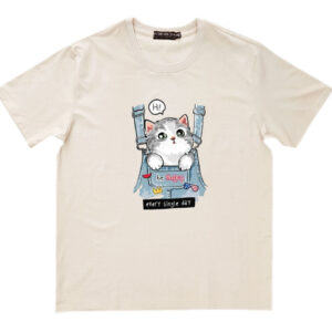 Áo thun cổ tròn thun cotton cao cấp in hình cô bé với chú mèo nhỏ