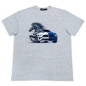 Áo thun cổ tròn , tay ngắn in chữ Core demin trắng phối xám -đỏ