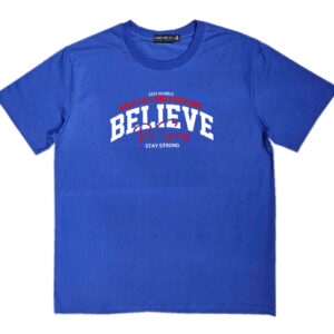 Áo thun cotton 4 chiều cao cấp in chữ Belive phối màu đỏ trắng
