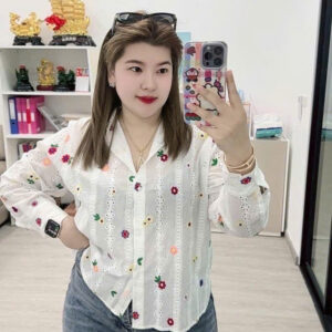Cô nàng cổ vuông , tay lỡ 3/4 phồng nhẹ , phối voan size lớn