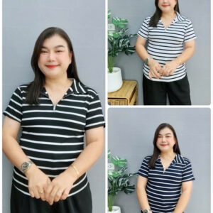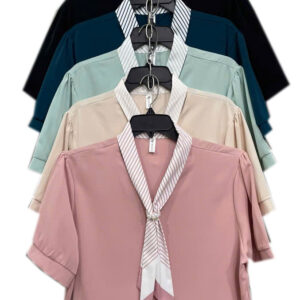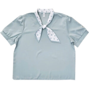 Sang quá áo chiffon thun phối nơ chấm bi và vòng ngọc trai size 46