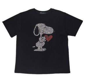 Hàng của Thái Lan , chất liệu thun gân co giãn cao cấp . Áo cổ tròn, tay ngắn phom A . Gọn gàng với màu đen với phần hình lấp lánh được đóng cẩn thận ( không lo rớt nha chị em mình ) . Áo có size dành cho chị em mình từ 80kg đến 90kg. Giá 240k