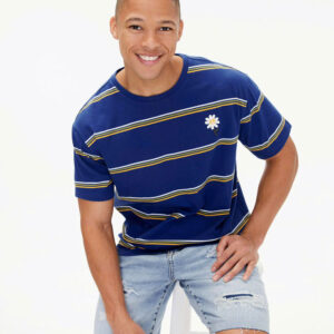 Áo xanh dương sọc logo hoa cúc size 2XL – 3XL