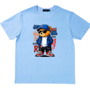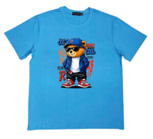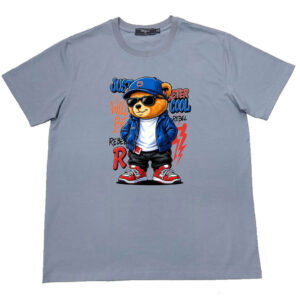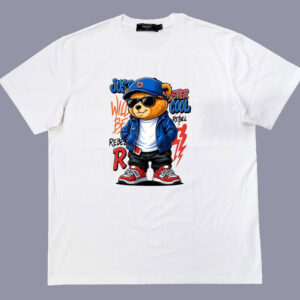 Áo thun , cổ tròn , tay ngắn , phom A . Chất cotton thun bốn chiều dầy dặn co giãn , thoáng mát và hút mồ hôi. Ngầu quá chú gấu phía trước ngực