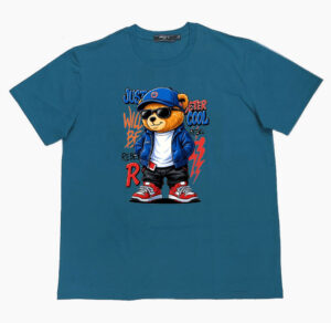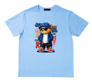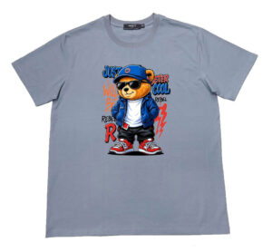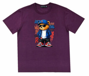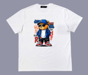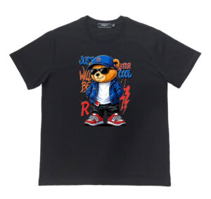 Áo thun , cổ tròn , tay ngắn , phom A . Chất cotton thun bốn chiều dầy dặn co giãn , thoáng mát và hút mồ hôi. Ngầu quá chú gấu phía trước ngực
