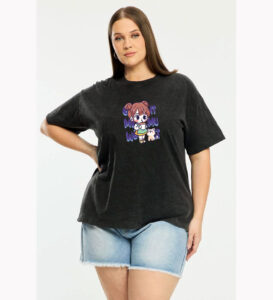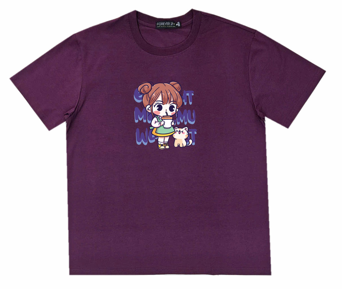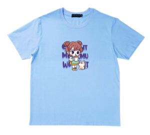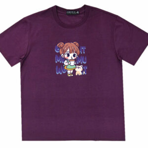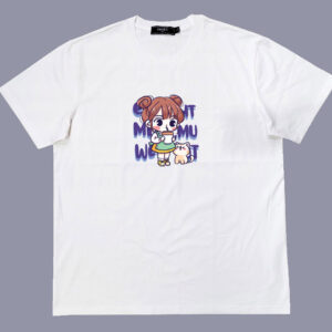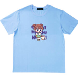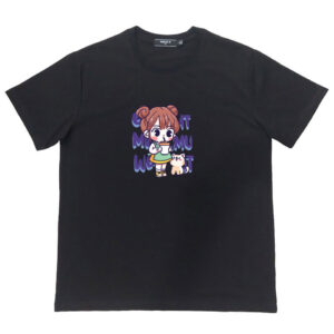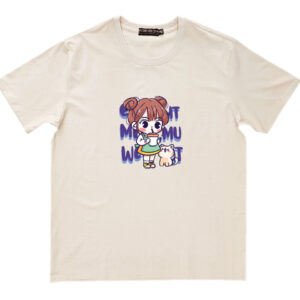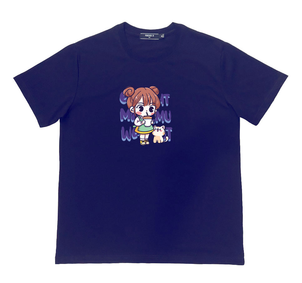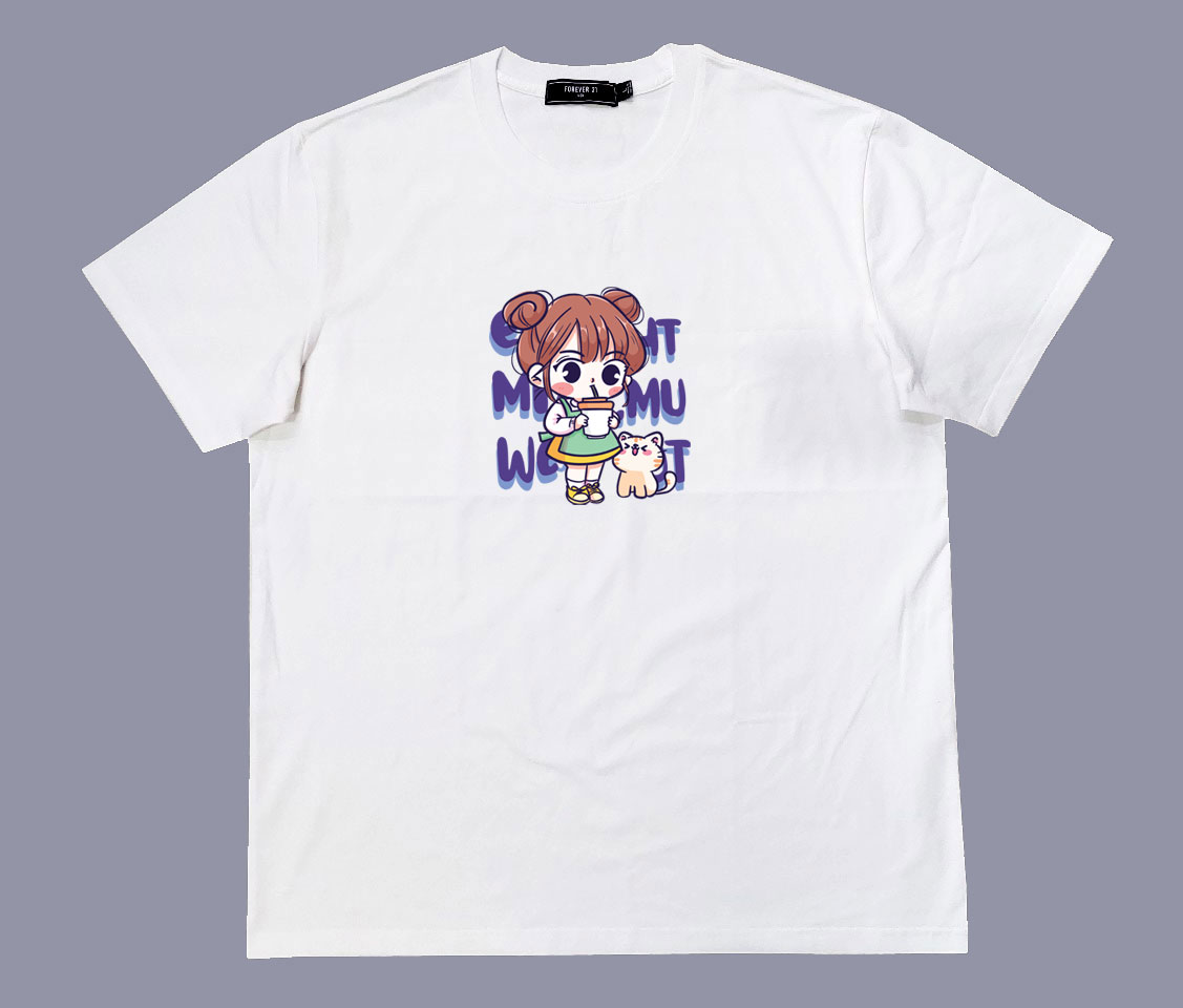 Áo thun cổ tròn thun cotton cao cấp in hình cô bé với chú mèo nhỏ