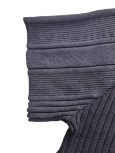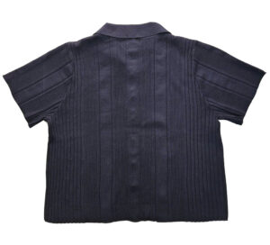 Chất len thừng dày dặn , to nhỏ phối cùng nhau , co giãn thoải mái . Áo cổ sơ mi , tay ngắn, phom A . Điểm nhấn là chiếc nút vàng . Áo có màu xanh đen . Áo có size cho nàng ngang ngực 68 cm và eo 70cm. Giá 270k