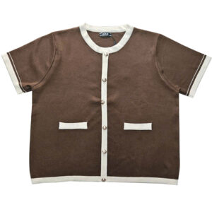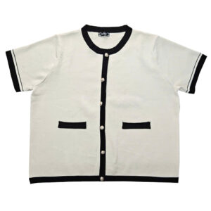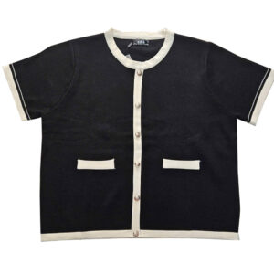 Chất len mongtoghi của Thái nè chị em ơi. Co giãn và dầy dặn không hề bị lộ hen . Trẻ trung cổ tròn, tay ngắn , phom suông . Điểm nhấn là phần phối cổ, tay và thân trước màu trắng kem trên nền : đen, đỏ, nâu, vàng kem và trắng . Cực sang với các chiếc nút vàng . Áo có size cho nàng ngang ngực 68 cm và eo 70cm. Giá 270k