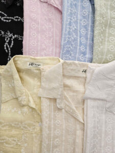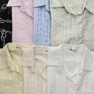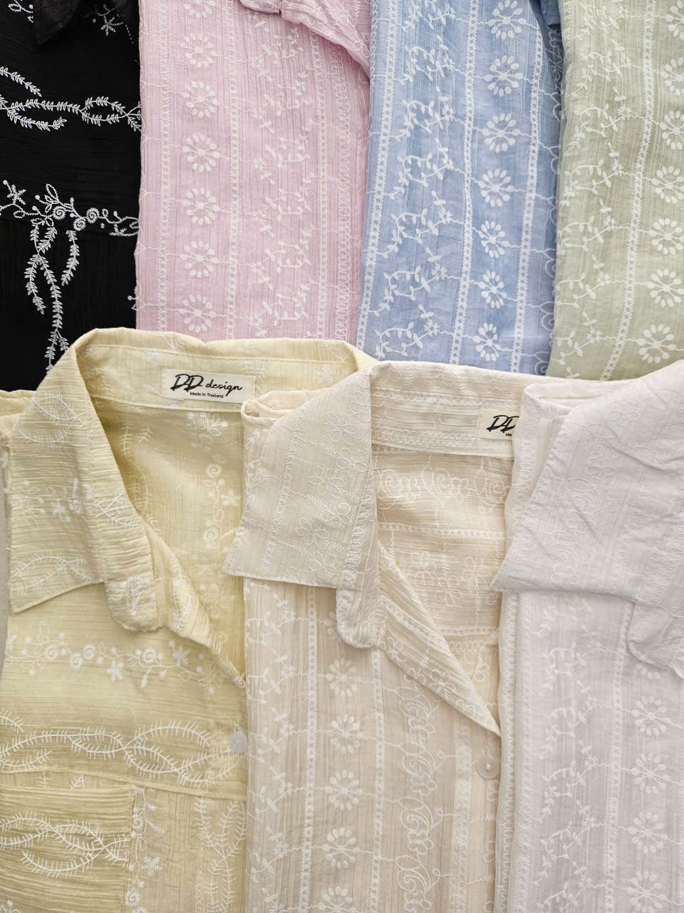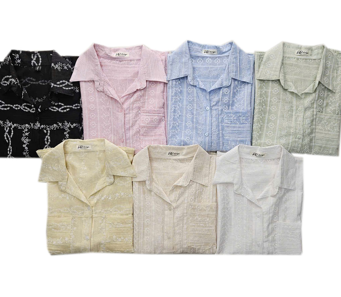 Chất liệu xô phối họa tiết trắng , co giãn thoải mái luôn . Áo cổ sơ mi , xẻ trụ, cài nút suốt thân áo, vạt bầu bầu có 1 túi ,tay ngắn xăn lai . Bộ sựu tập 4 màu dễ thương : đen ,trắng, hồng và xanh . Áo có size 52 ( ngực 128cm , eo 128cm ) . Giá 240k